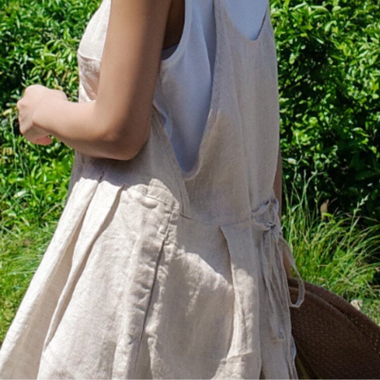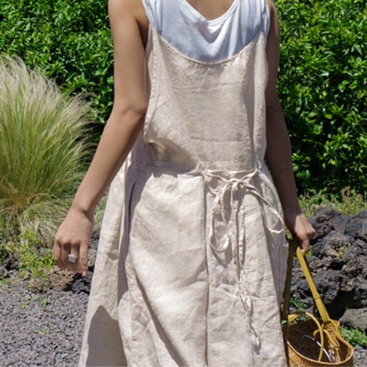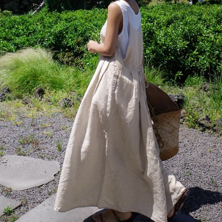 晩夏から秋口まで活躍する、リネン素材のマキシ丈ワンピースです。