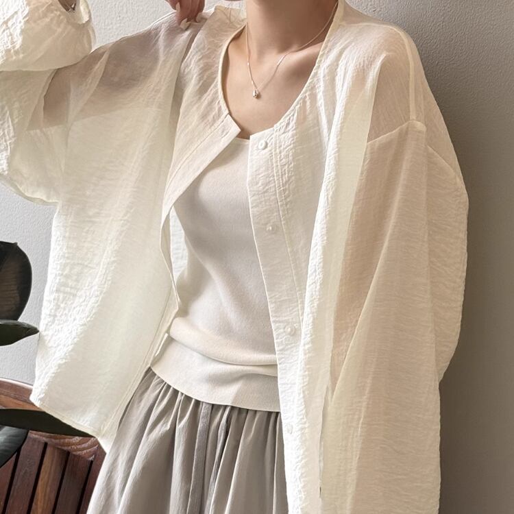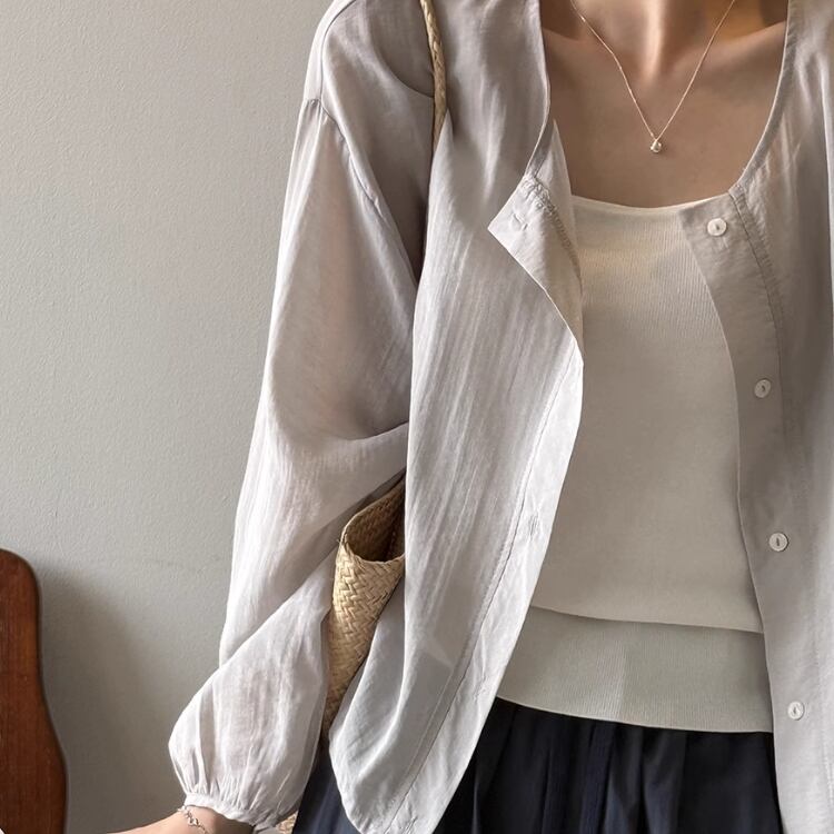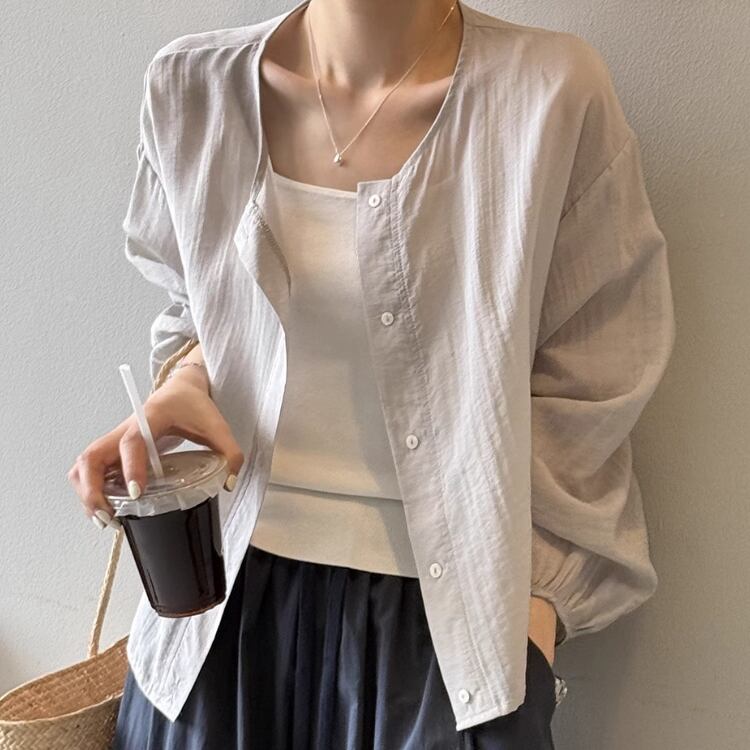 ボタンフロントのバルーンスリーブカーディガンは、晩夏から秋口まで長く活躍するアイテムです。