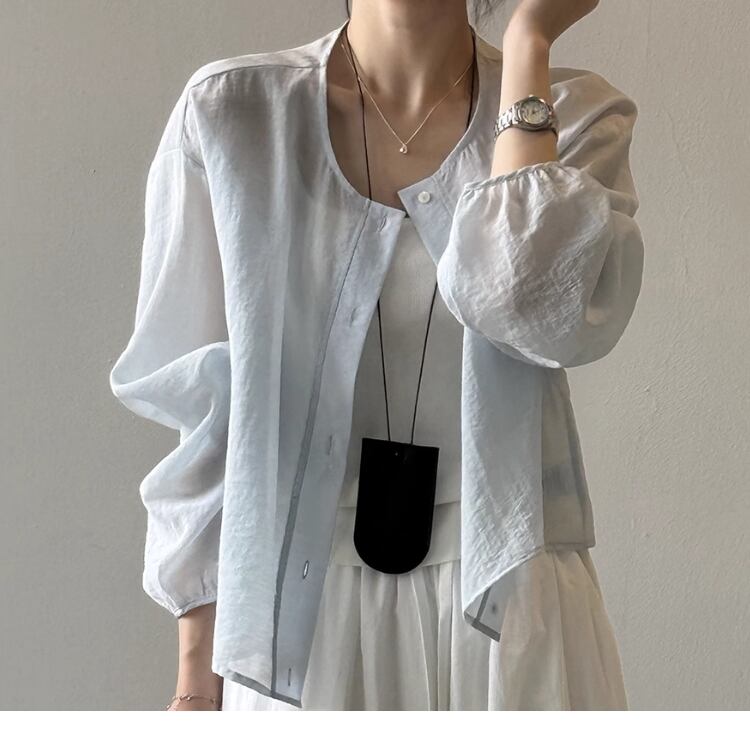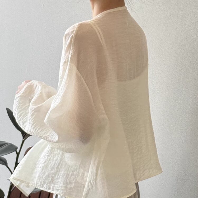 シンプルなデザインながら、バルーンスリーブが女性らしいシルエットを演出します。