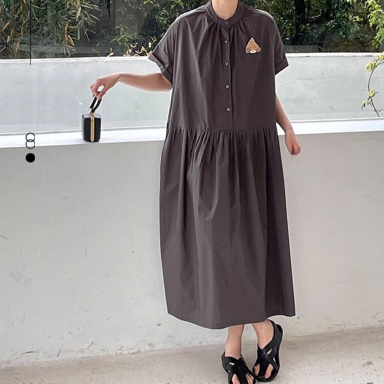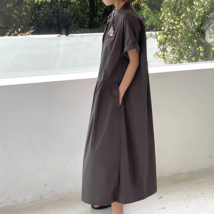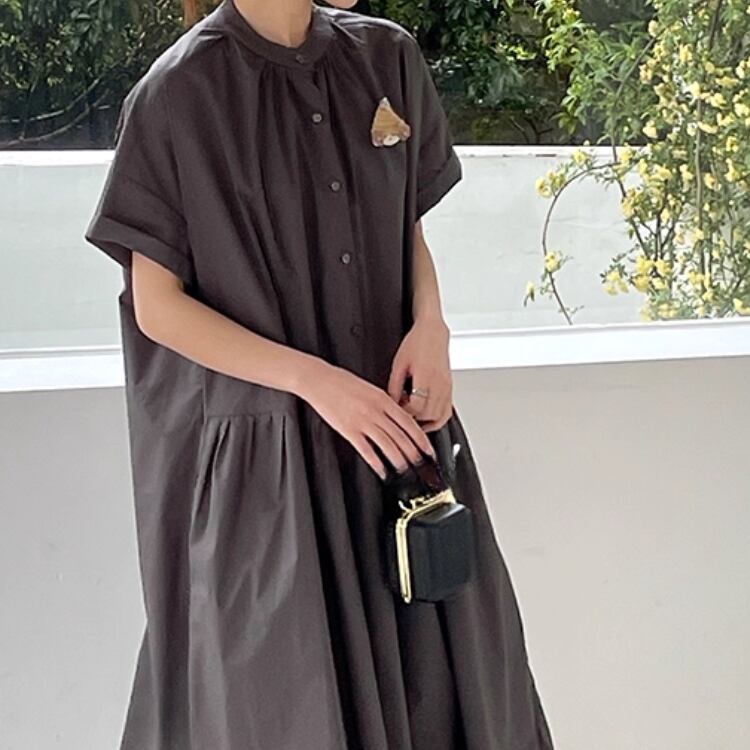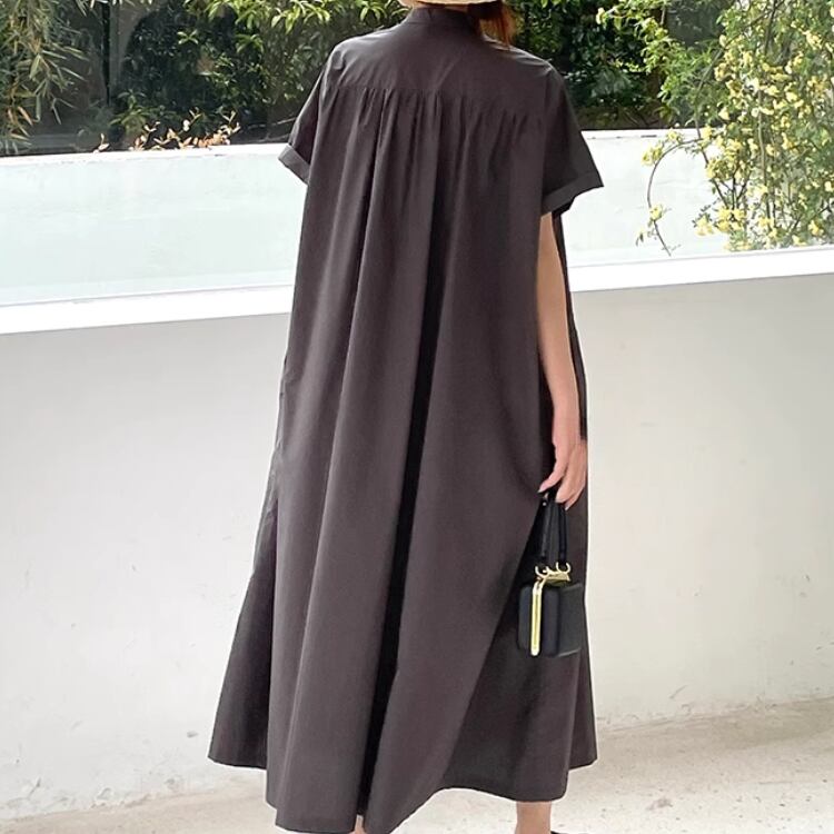 スタンドカラー(折り返しのない襟)が首元をすっきりと見せてくれ、上品な印象を演出します。