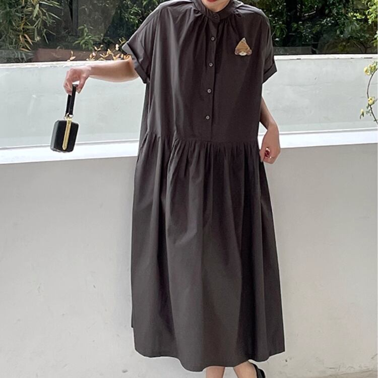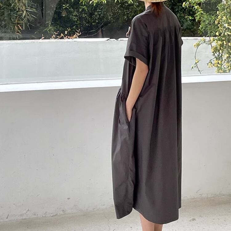 落ち着いた雰囲気のロング丈ワンピースは、Aラインシルエットが体型カバーにも効果的です。