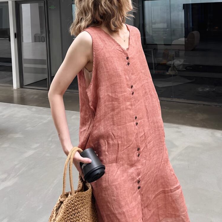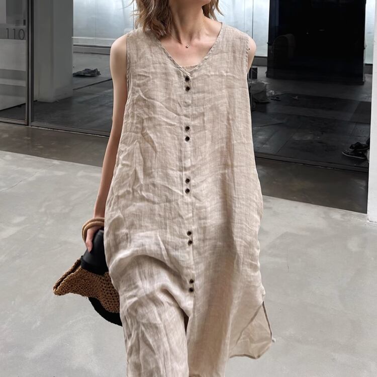 マキシ丈で体型カバーも叶えつつ、爽やかな素材が夏の装いを軽やかに彩ります。