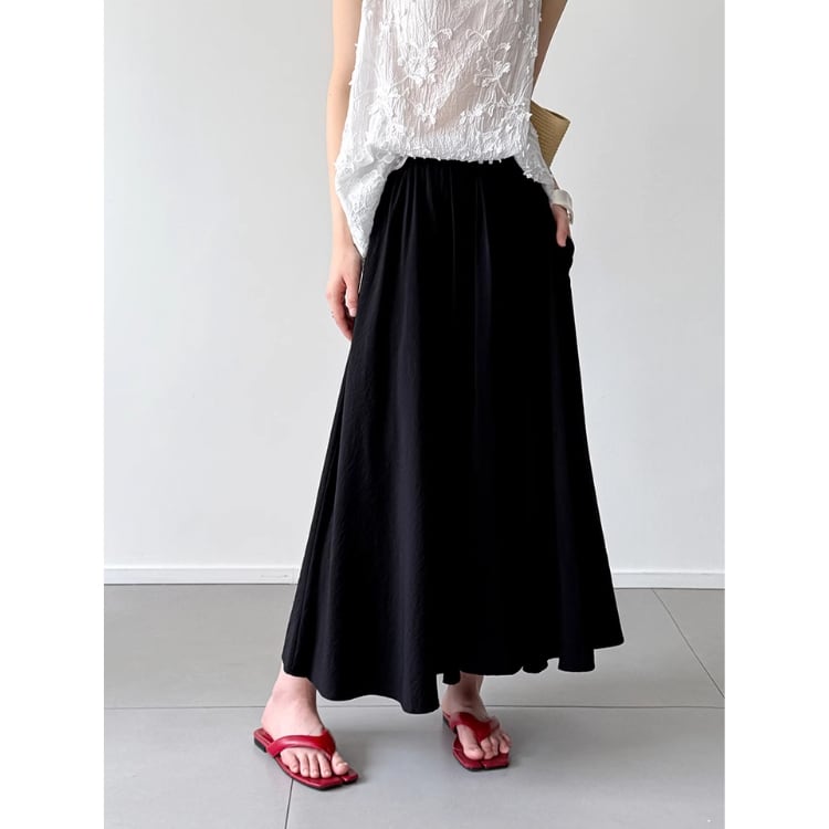 リラックス感のある着心地と、上品なシルエットが魅力のロングスカート。