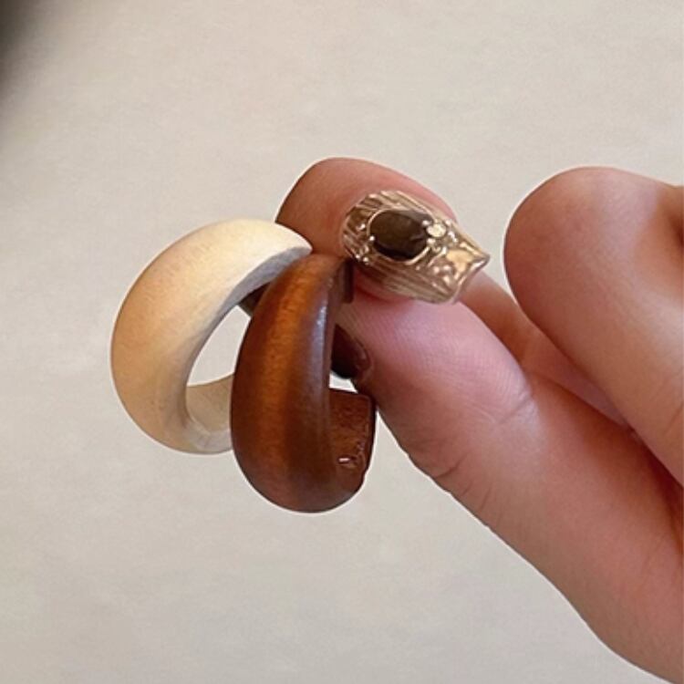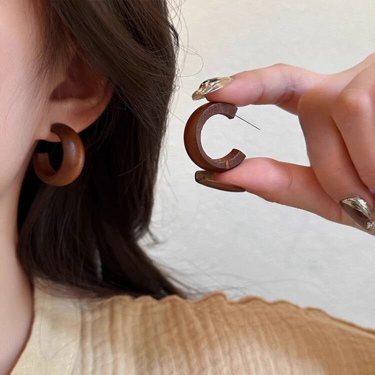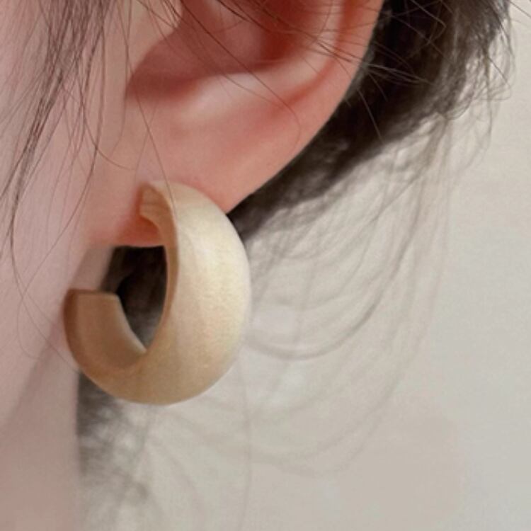 半円形のフォルムが耳元をさりげなく彩り、どんなスタイルにも合わせやすいのがポイント。