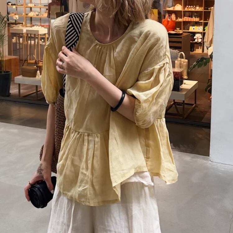 自然な風合いとゆったりとした雰囲気が魅力のブラウスです。
