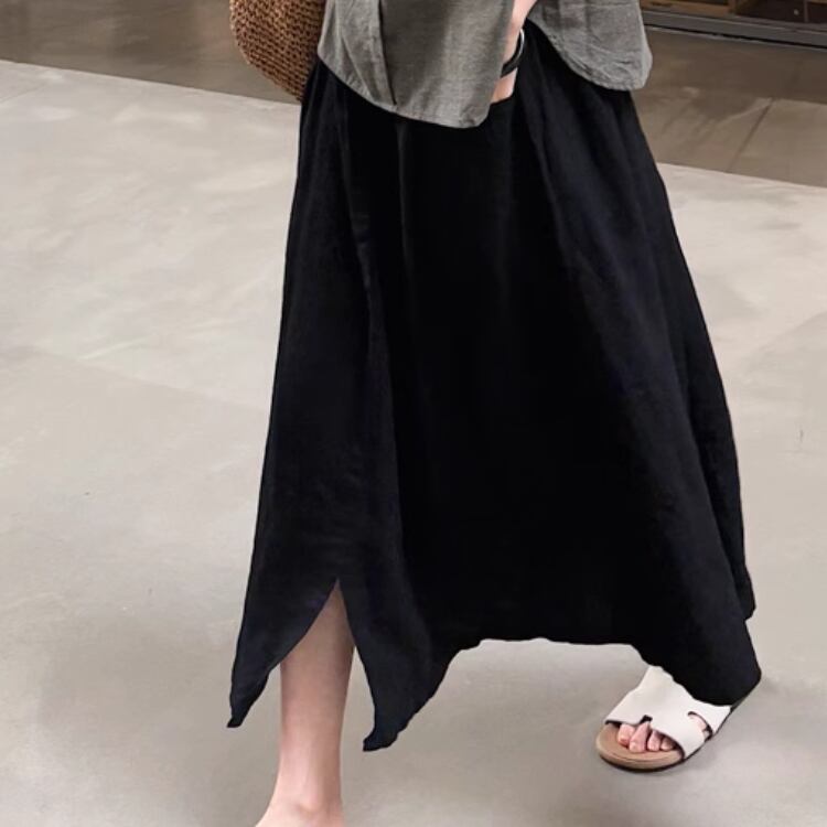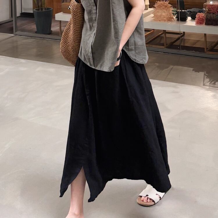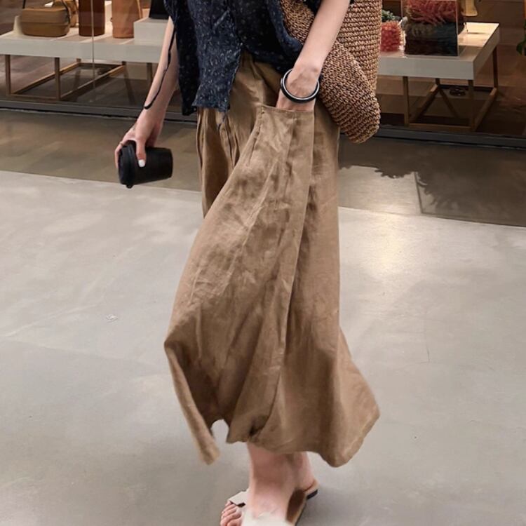 マキシ丈のゆったりとしたシルエットが、歩くたびに優雅な動きを演出します。