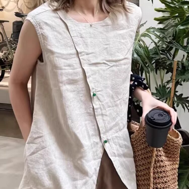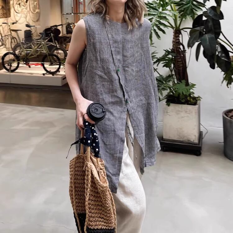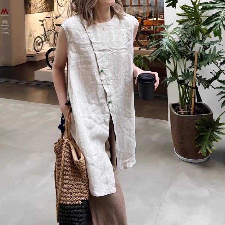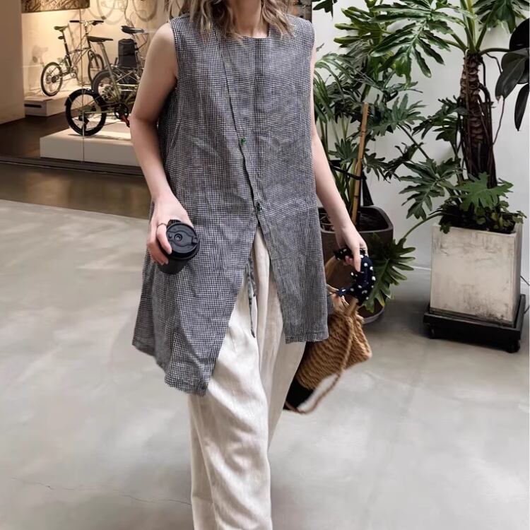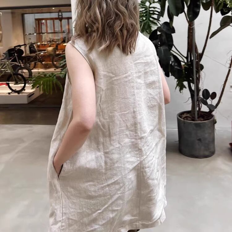 自然な洗い感を追求したノースリーブロング丈トップス。