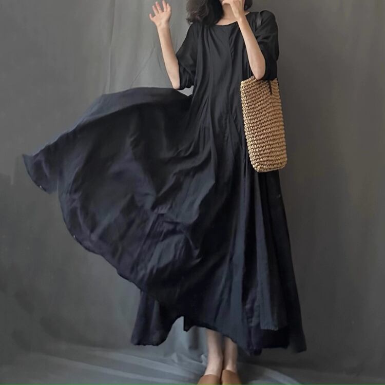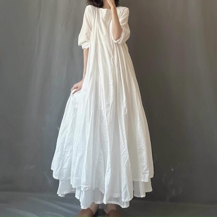 Aラインシルエットと重ね着風のデザインが、気品漂う大人の女性らしさを演出します。