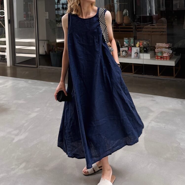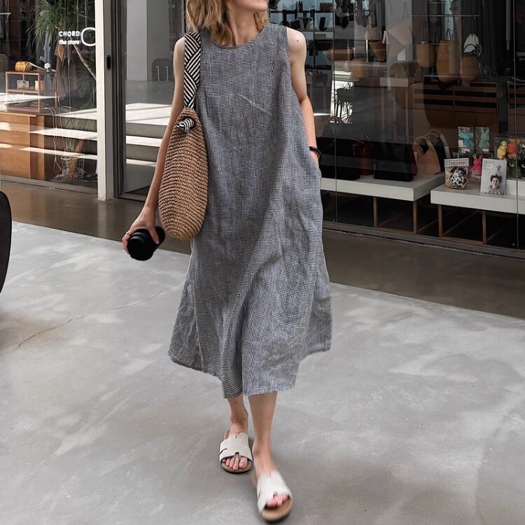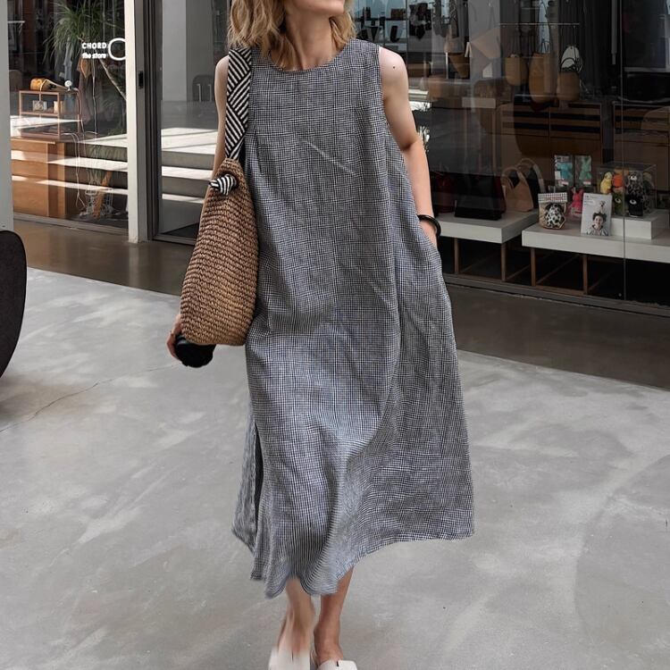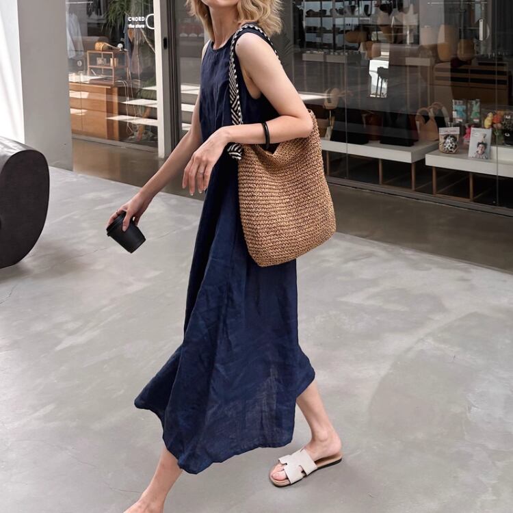 夏の軽やかスタイルを彩るノースリーブワンピース。