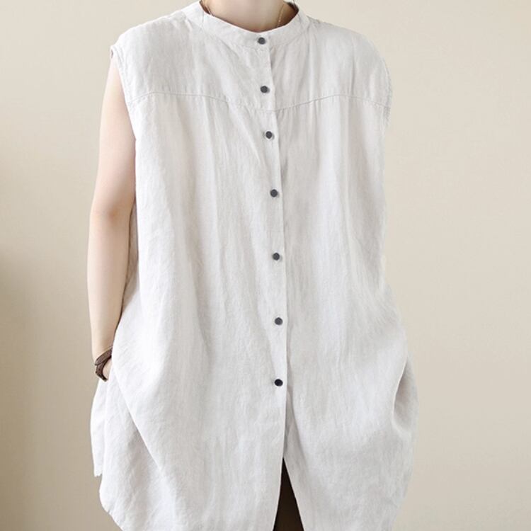 Aラインシルエットが美しいノースリーブトップス。