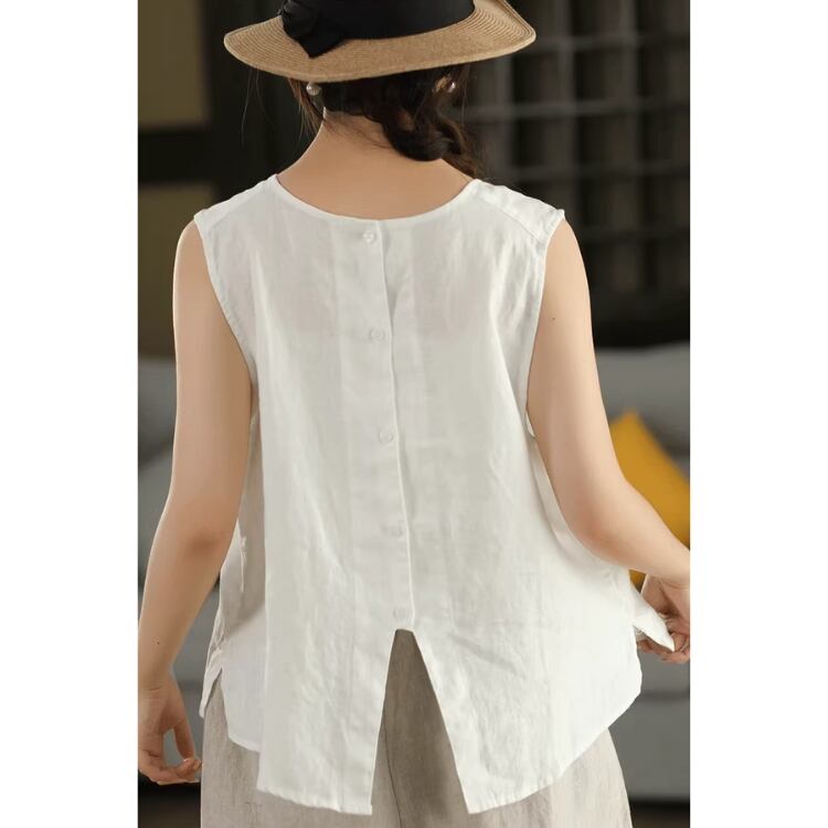 バックスタイルのボタンデザインがさりげないアクセントとなり、シンプルな装いに個性をプラスします。