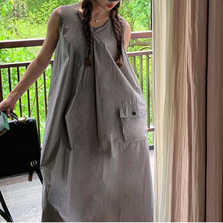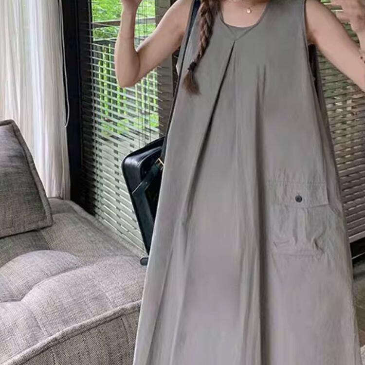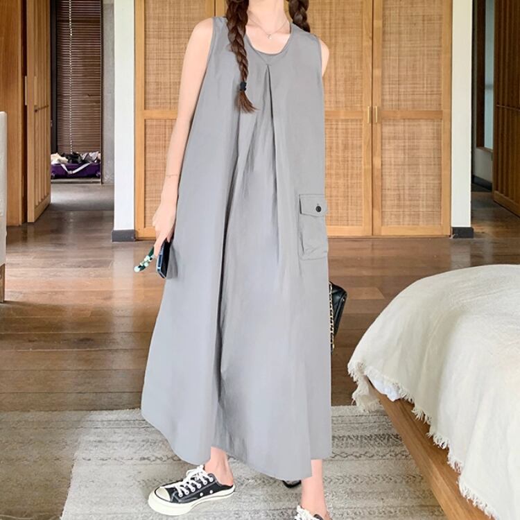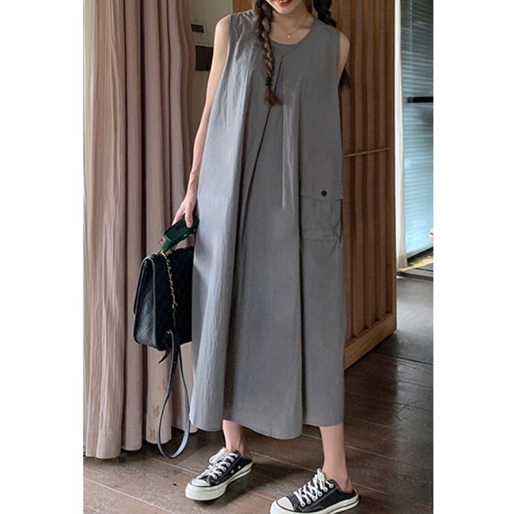 ゆったりとしたAラインシルエットが体型をカバーし、リラックス感のある印象です。