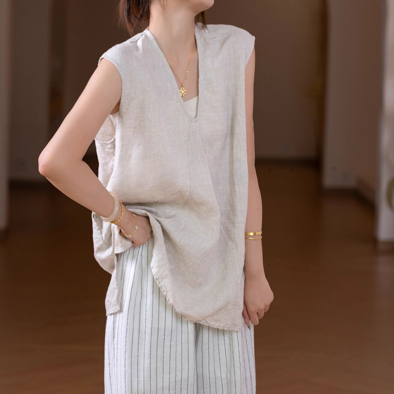 大人ナチュラルなノースリーブトップス。