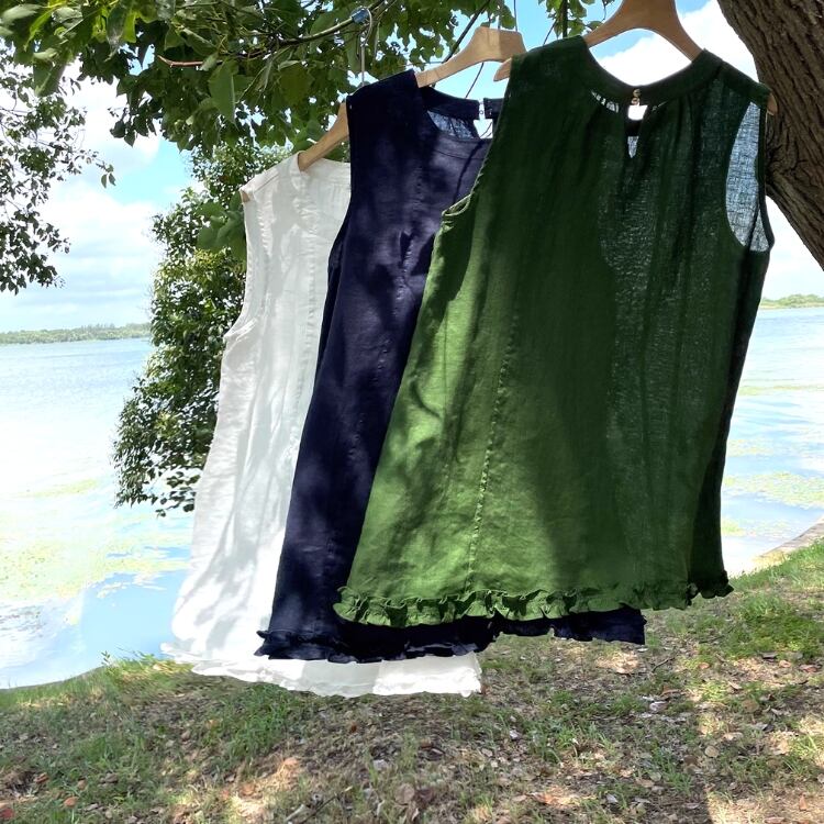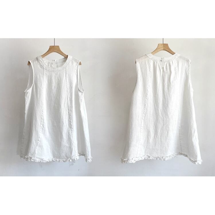 大人ナチュラルな着こなしにぴったりのノースリーブトップス。