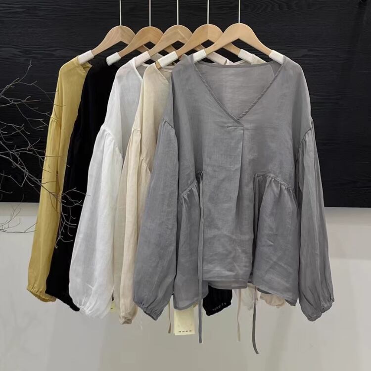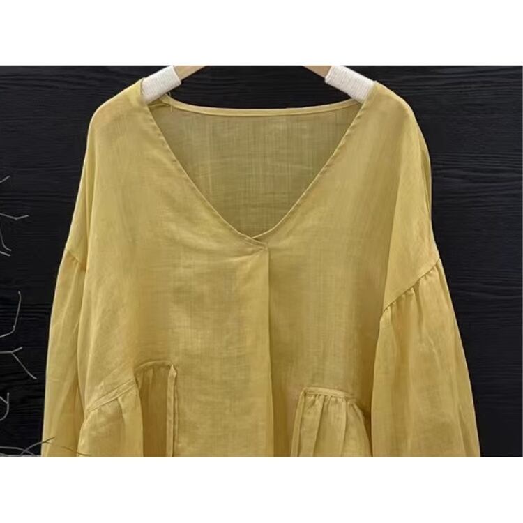 Vネックのデザインがデコルテを美しく見せ、女性らしさを演出します。