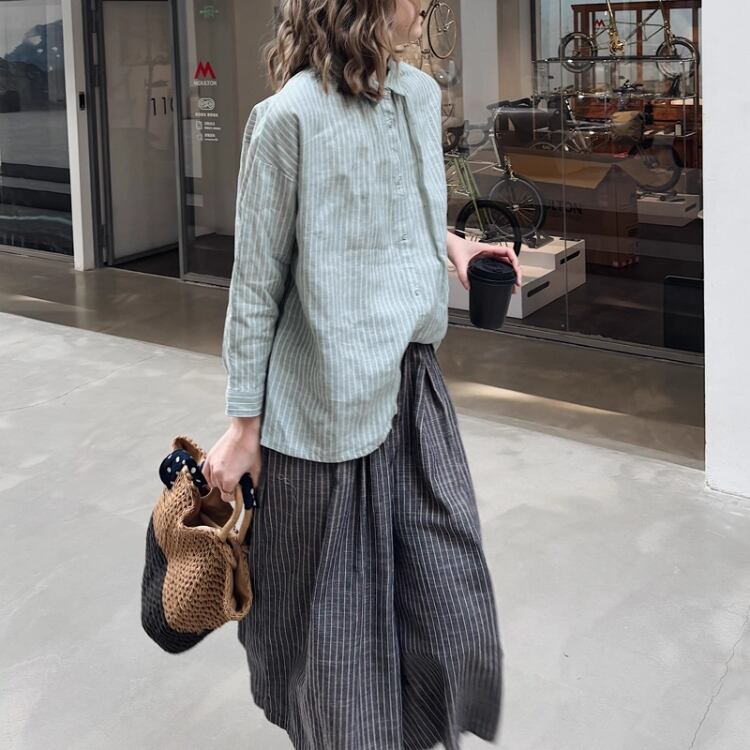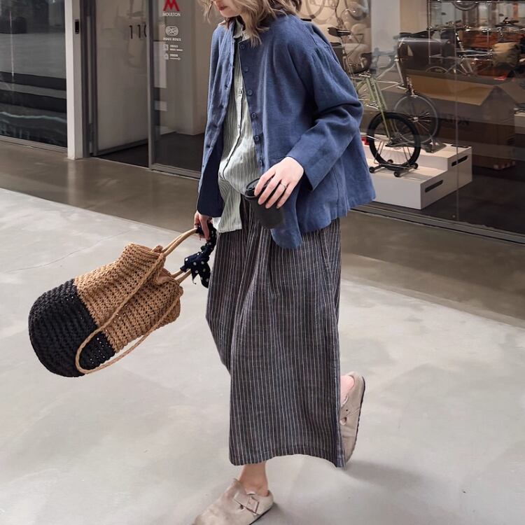 細かなストライプ柄がさりげなくおしゃれな一枚です。