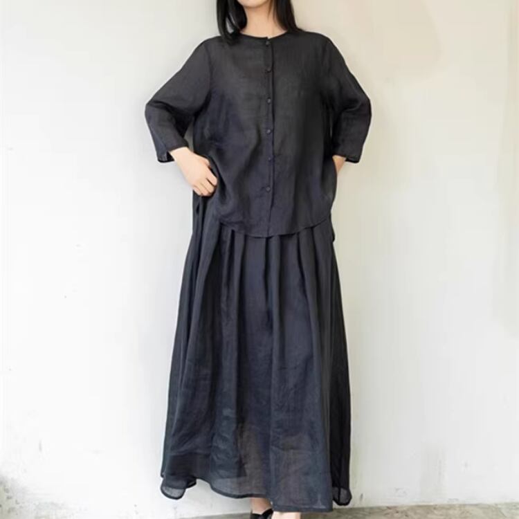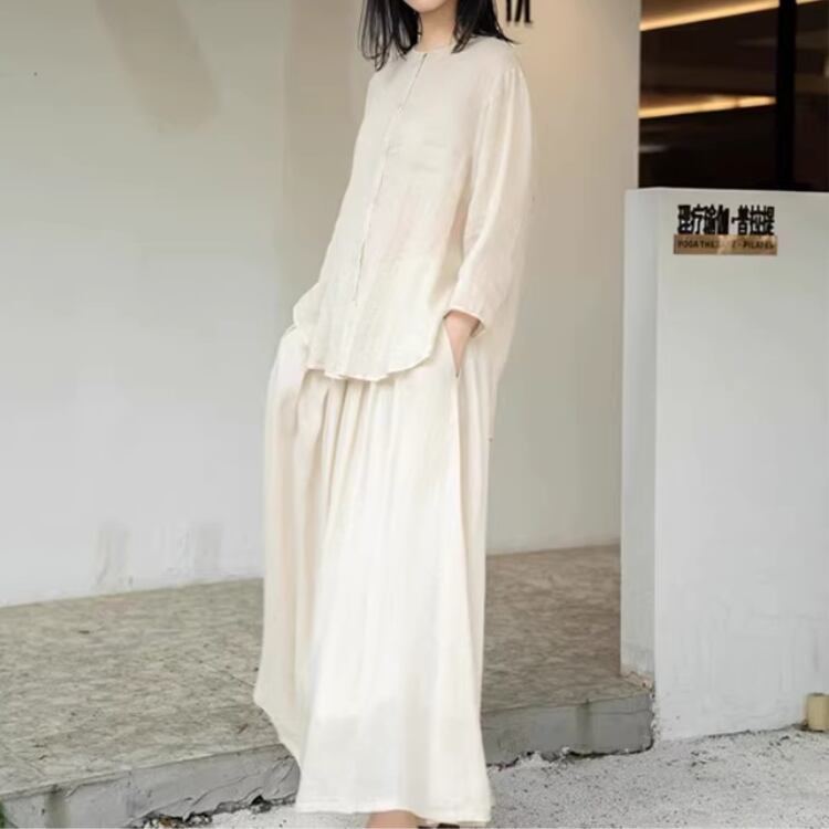 ラウンドネックとボタンデザインが、さりげない上品さをプラス。
