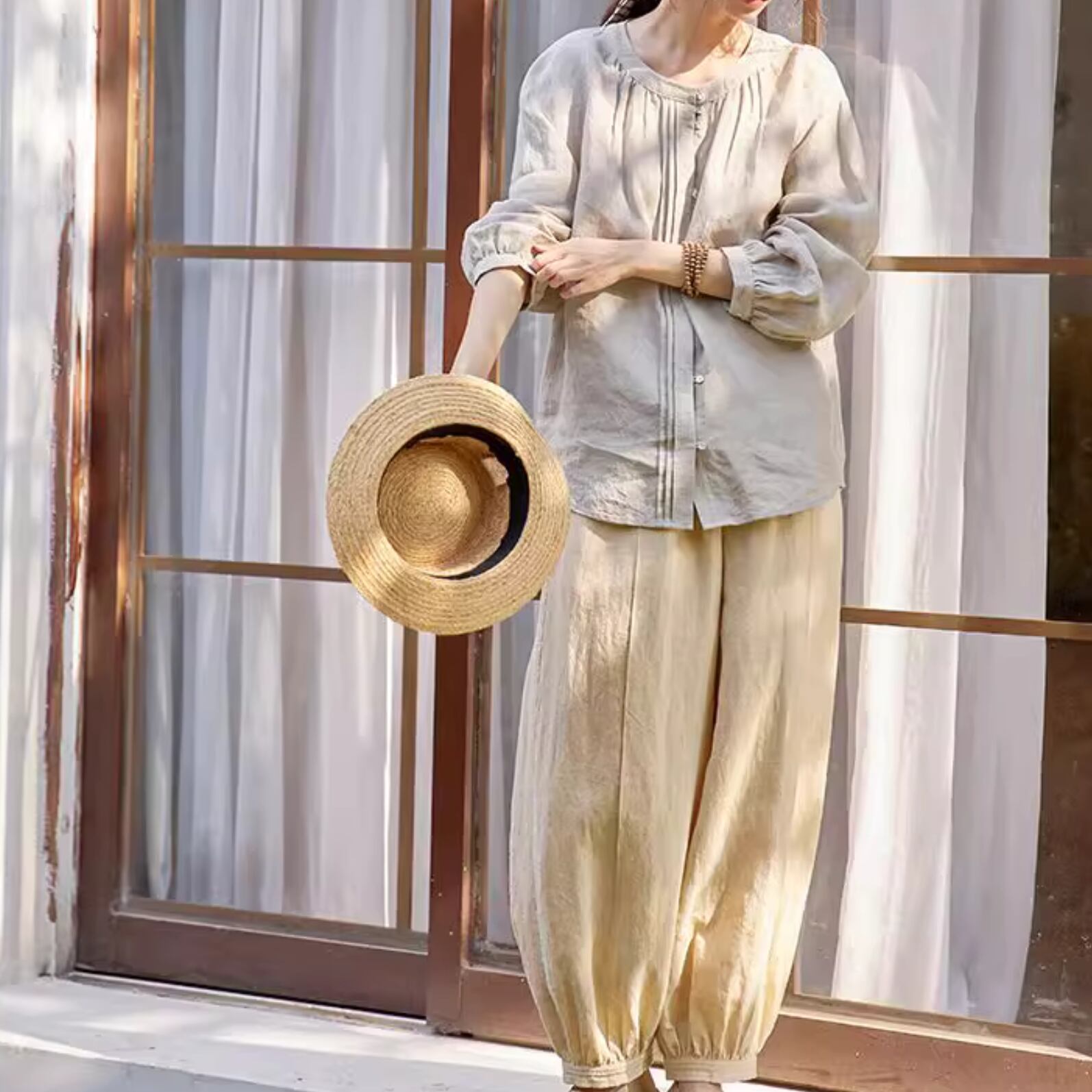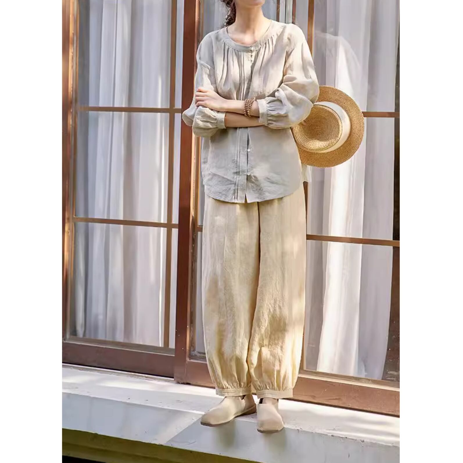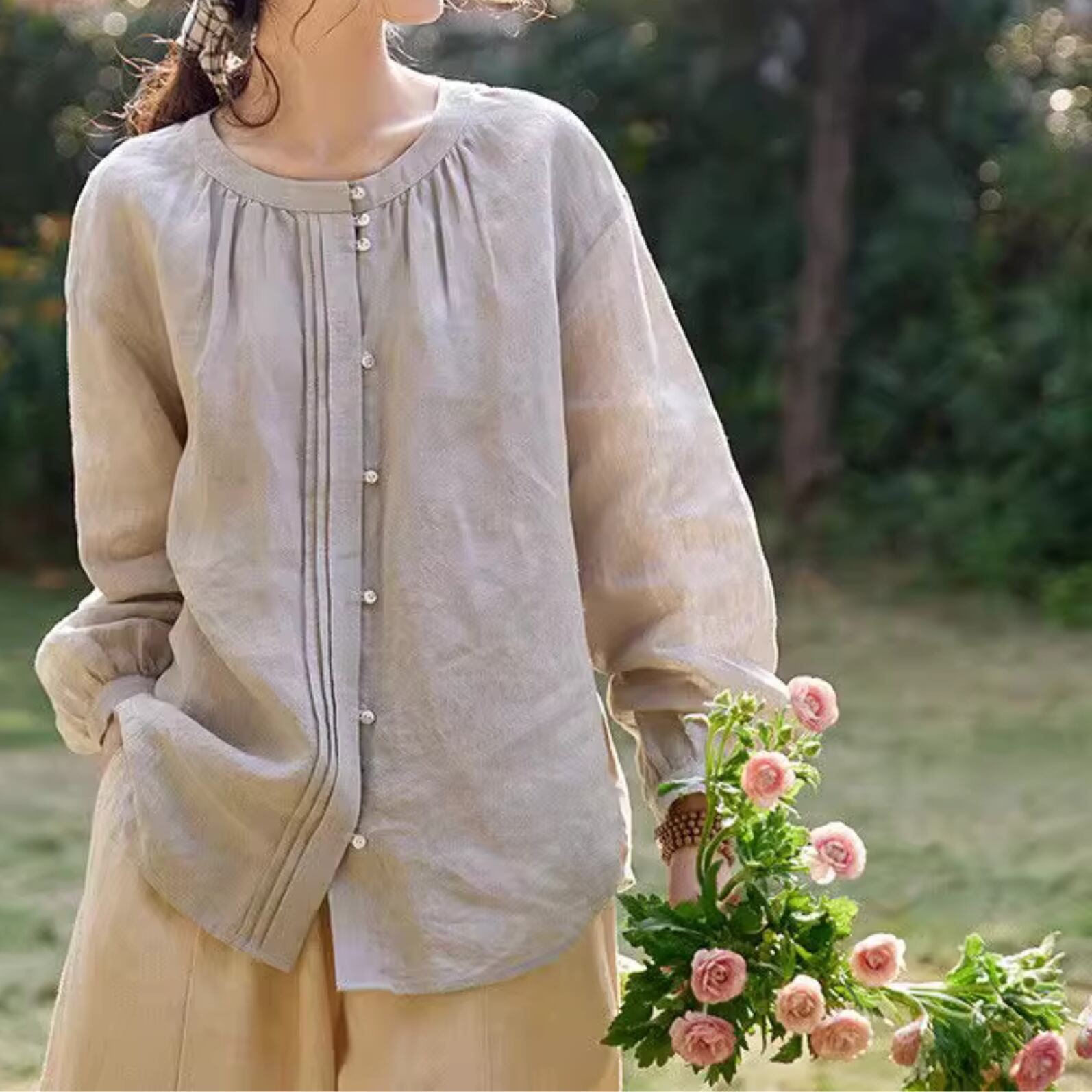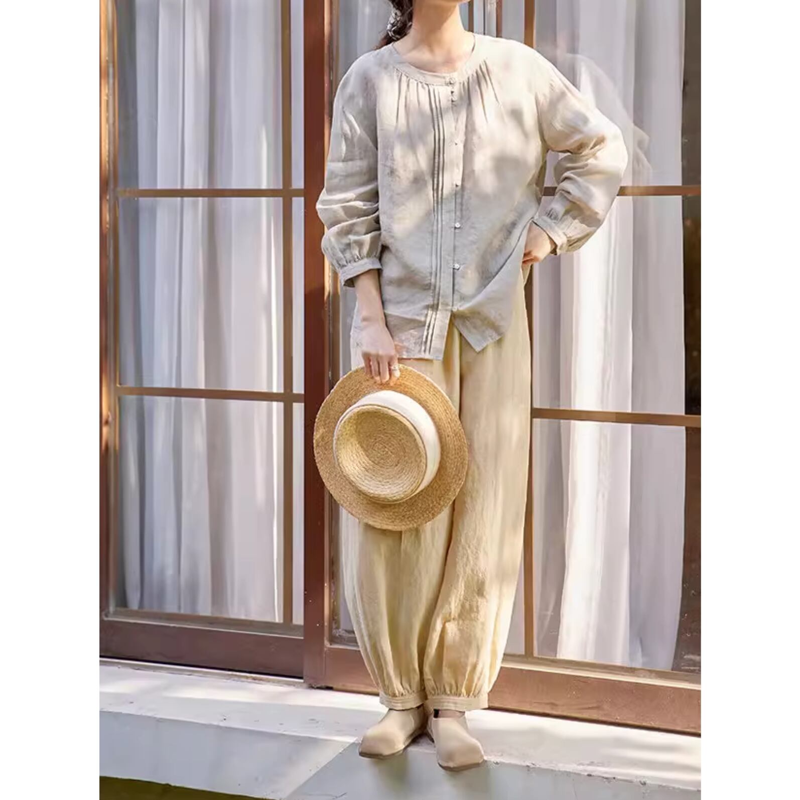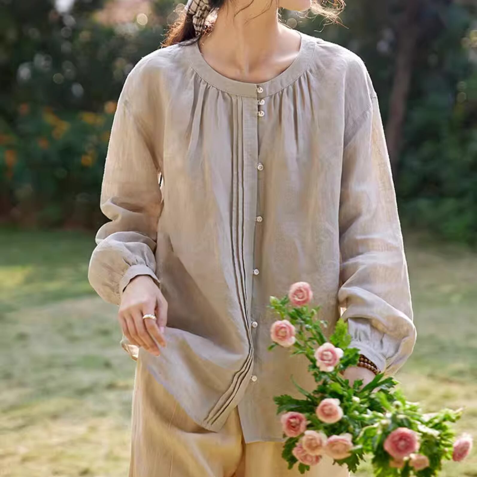 ラウンドネックとふんわりとしたシルエットで、大人の女性らしい上品さを演出します。