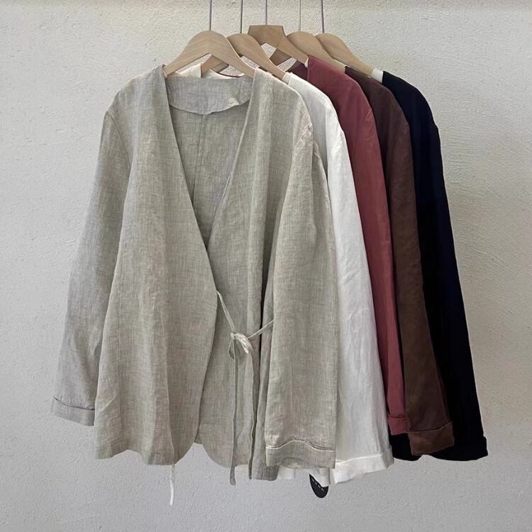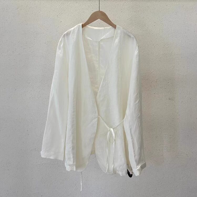 Vネックがデコルテを美しく魅せ、前を閉めてシャツとして、羽織として、アレンジ自在なアイテムです。